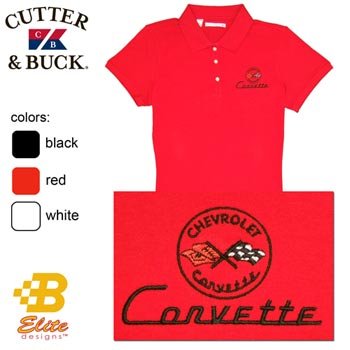 This Ladies Cutter & Buck Ace Polo features a 1x1 rib knit collar with spandex ribbed cuffs a three-button placket with pearl colored logo buttons and side vents. This 100% cotton piqu? is specially treated for extra softness. The C1 Corvette emblem and script is embroidered on the front left chest. Available in sizes Small through XXLarge in the following colors Black Red and White..../ C1 Corvette Embroidered Ladies Cutter & Buck Ace Polo Black Small Bdc1epl826 / Buck Gear